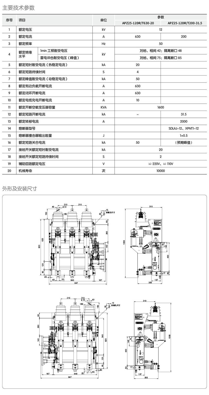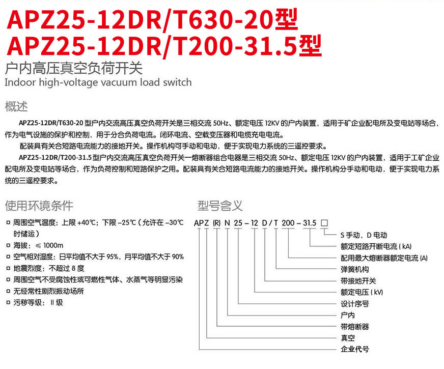 APZ25-12DR/T200-31.5型户内高压真空负荷开关